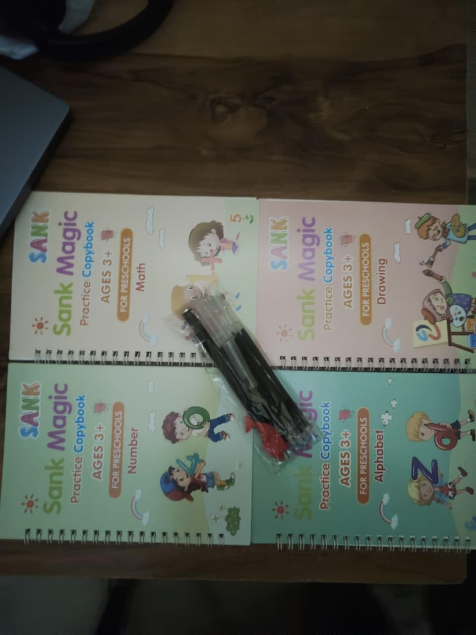 This is Sank Magic Practice Copybook 4 BOOK and 1 PEN, 10 REFILL, Preschoolers with Pen, Magic calligraphy books for kids and this is best product and value for money